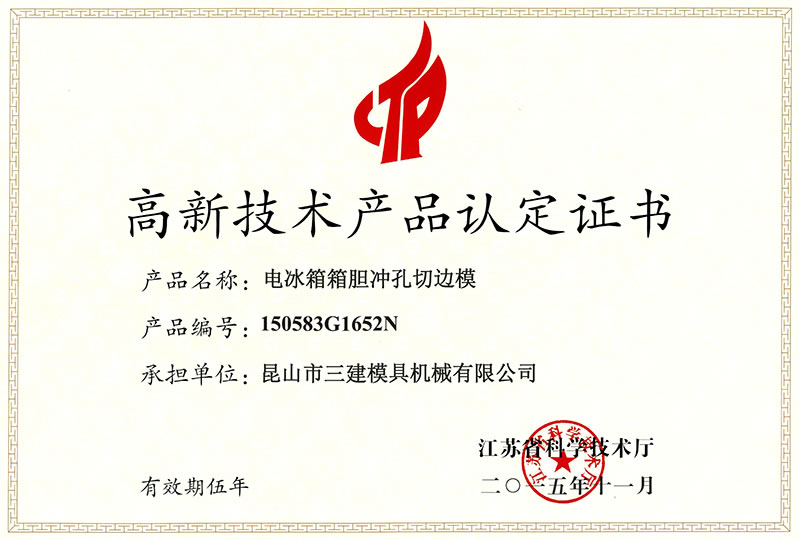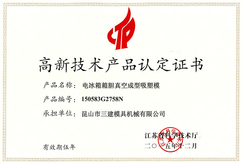 昆山市三建模具機械有限公司 創建于1996年,是一家研發生產電冰箱模具(電冰箱門、箱真空成型吸塑模、沖孔切邊模、